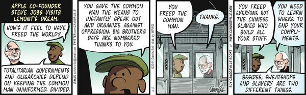 Since I live around the corner from one of these place where Chinese Slaves build all the Apple products, I feel it is necessary for me to set the record straight. There isn’t much difference between sweatshops and slavery. HAHA!